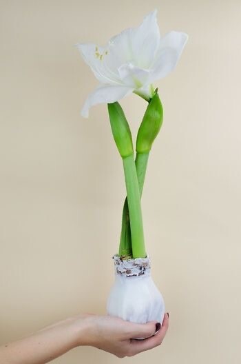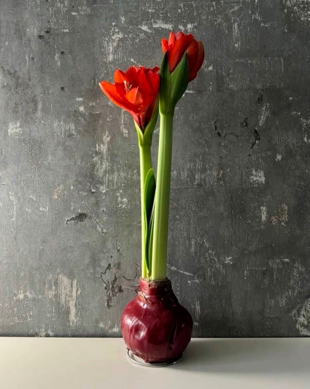 А дальше просто наблюдать за настоящим волшебством, ростом цветка и последующим цветением. Спустя одну-две недель из верхушки луковицы выстрелит цветоносная стрелка, за ней распустятся эффектные, крупные цветы. Весь спектакль разворачивается у вас на глазах, без какого-либо участия с вашей стороны.