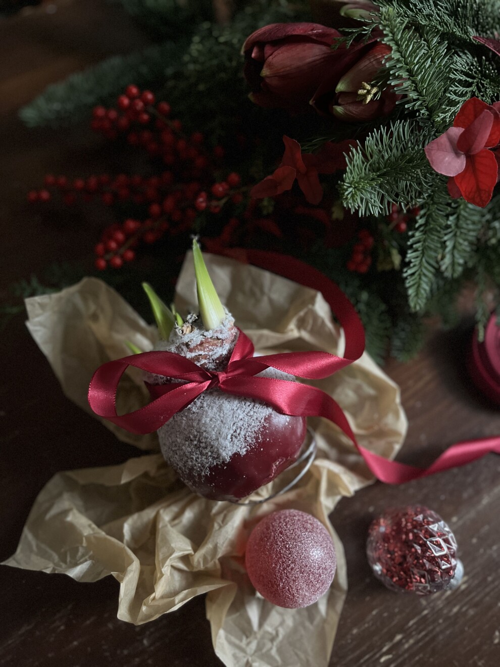 Амариллис в воске — это луковица, заключённая в декоративную восковую «капсулу» с питательной средой. По сути, мини-оранжерея в одной руке: растению не нужны почва, горшок и даже полив.
