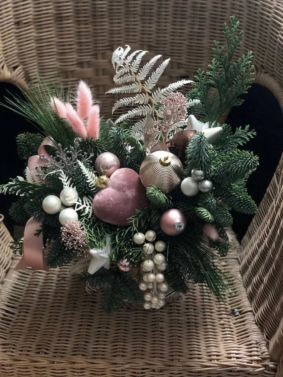 🎄Новогодняя композиция из нобилиса пыльно-розовая.