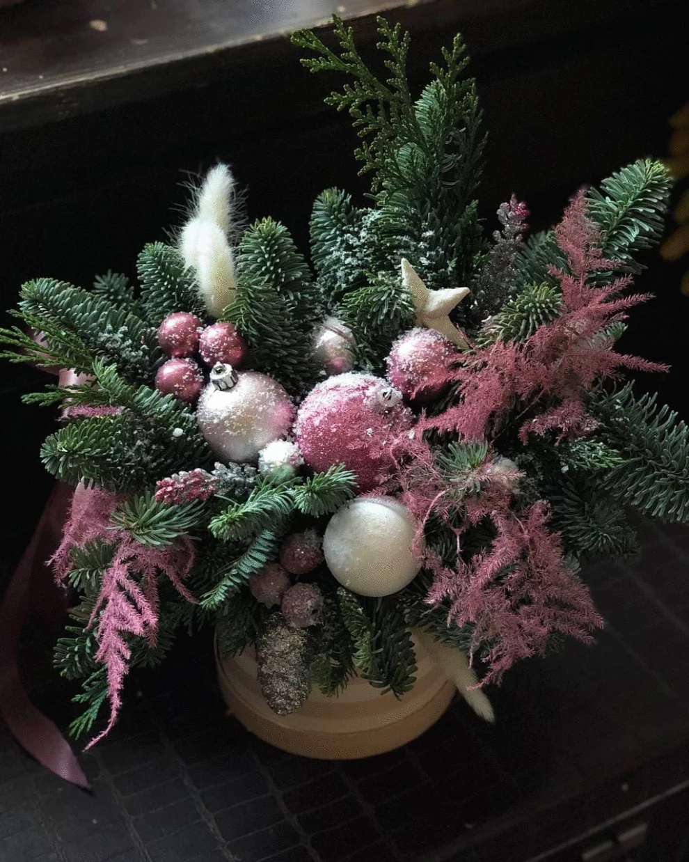 🎄Новогодняя композиция из нобилиса в пыльно-розовых .
