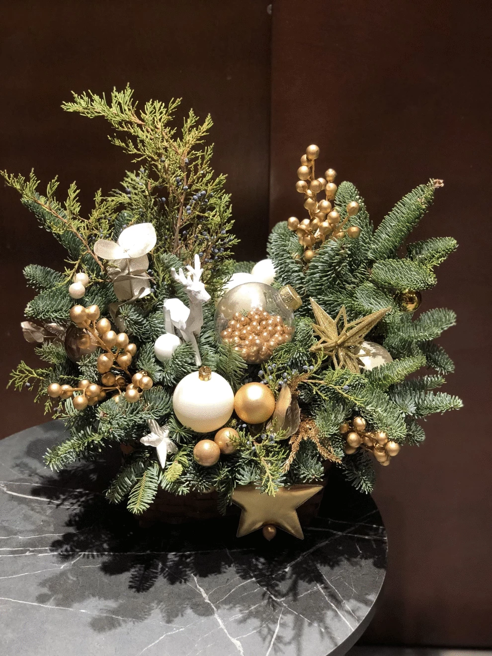 🎄Новогодняя композиция из нобилиса в золотисто-белых тонах.